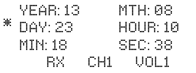 Voer de gegevens YEAR, MONTH, DAY, HOUR, MIN, SEC in en druk vervolgens [ENTR]