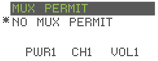 Druk op [^ v - toetsen] totdat MUX PERMIT is geselecteerd.
